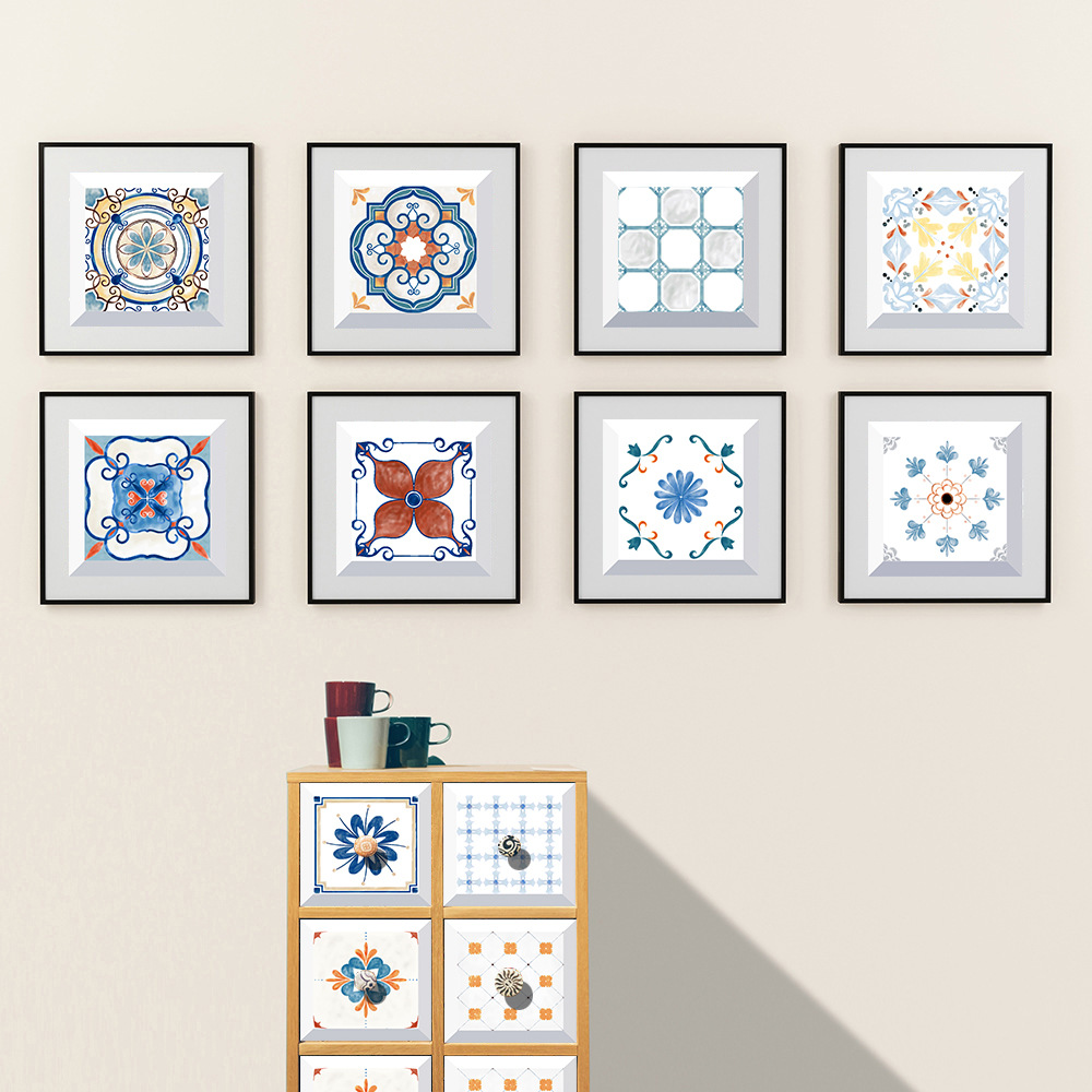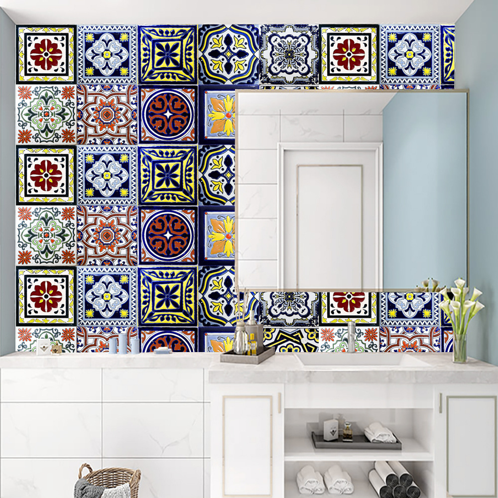 16枚のレトロな花の模様の磁器のれんがを入れて家の装飾を貼ります。