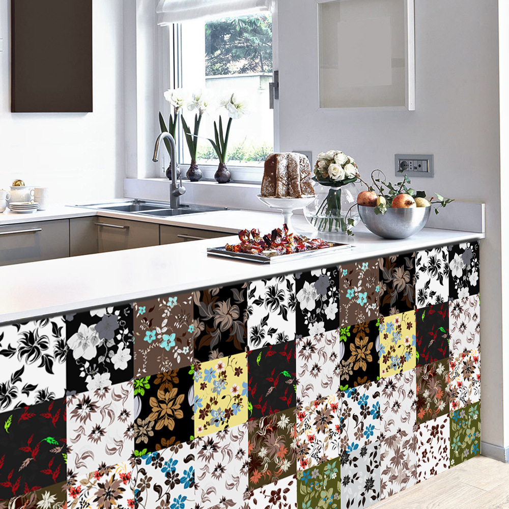 16枚入りの清新でシンプルな植物模様のシミュレーションタイルは家庭装飾の表面の明るい膜の台所の防油シールを貼ります。