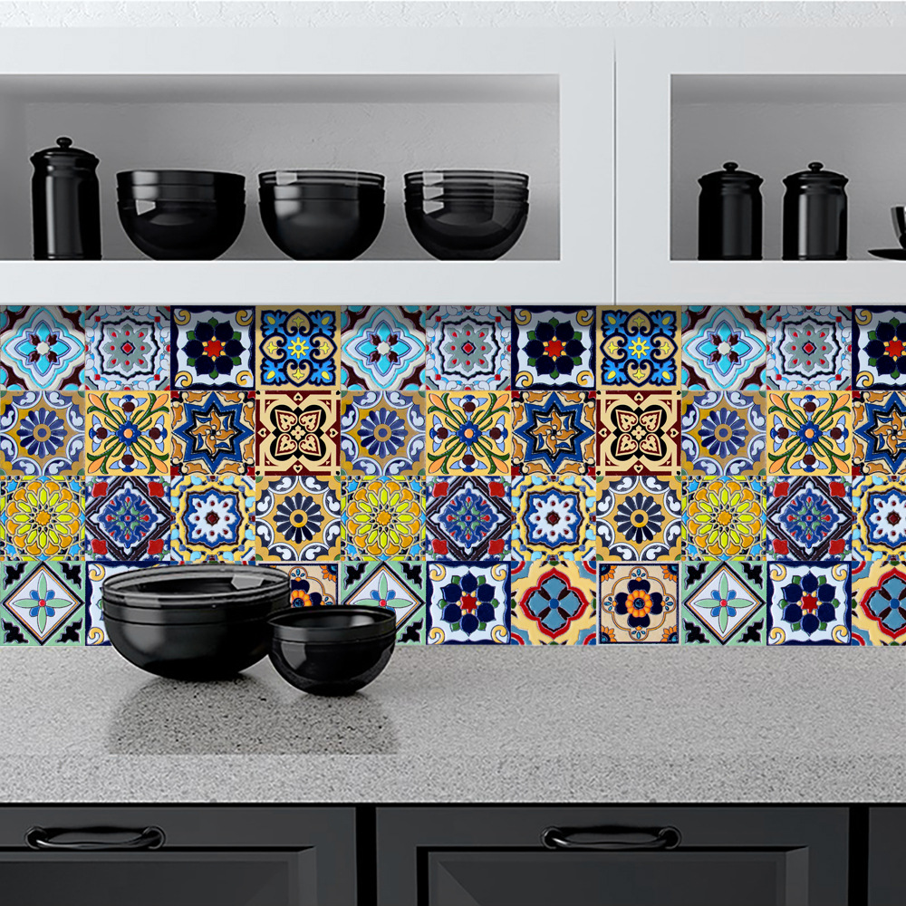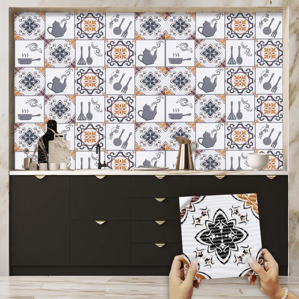 10枚入りの食器の模様の表面が明るい膜のシミュレーションタイルは台所の浴室の客間に貼り付けることができます。