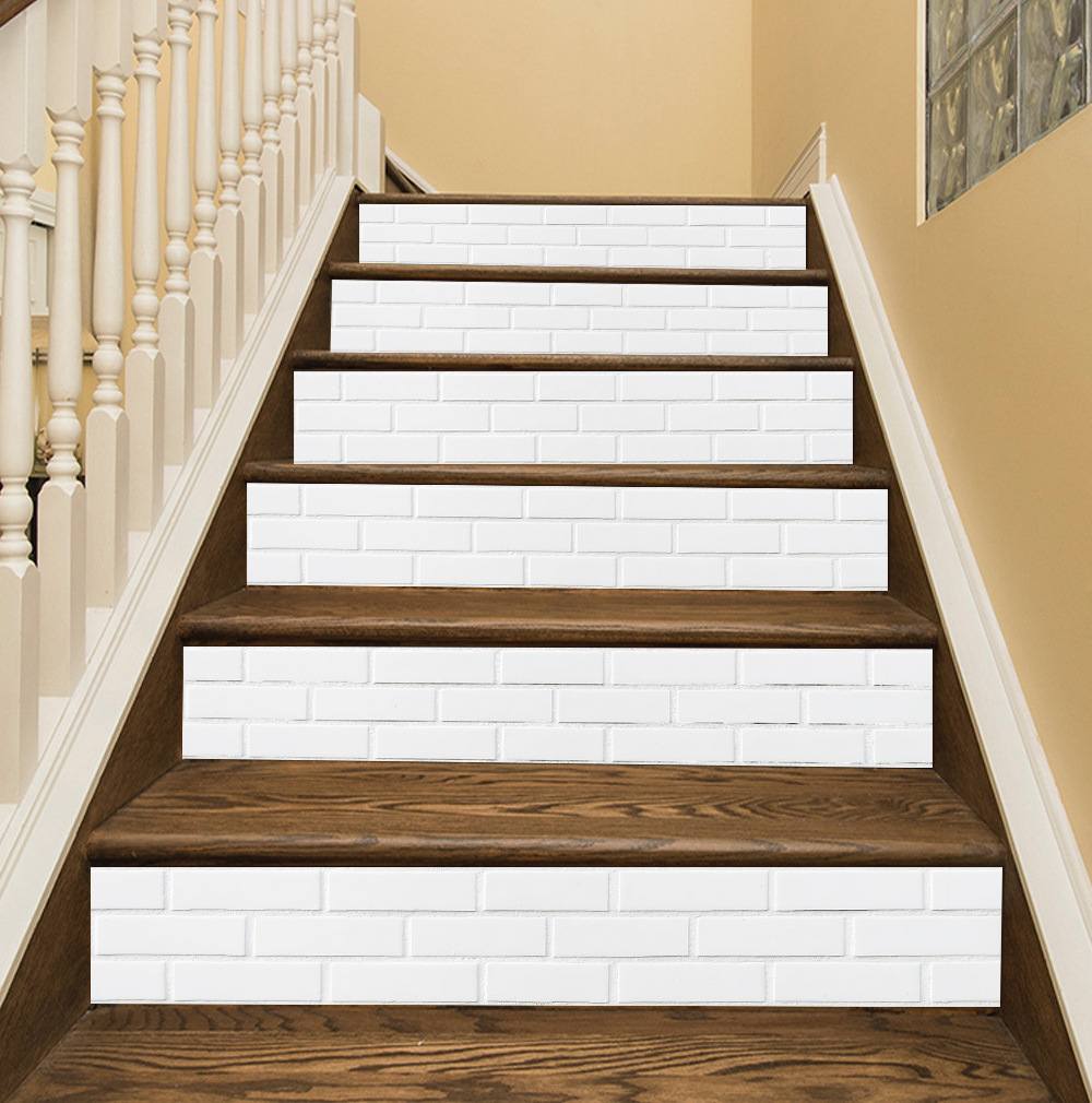 6枚の白いシミュレーションレンガの階段に階段を貼ってステップを踏んで装飾を作り直します。
