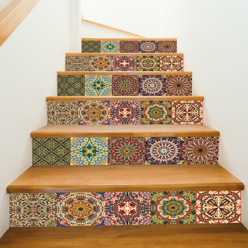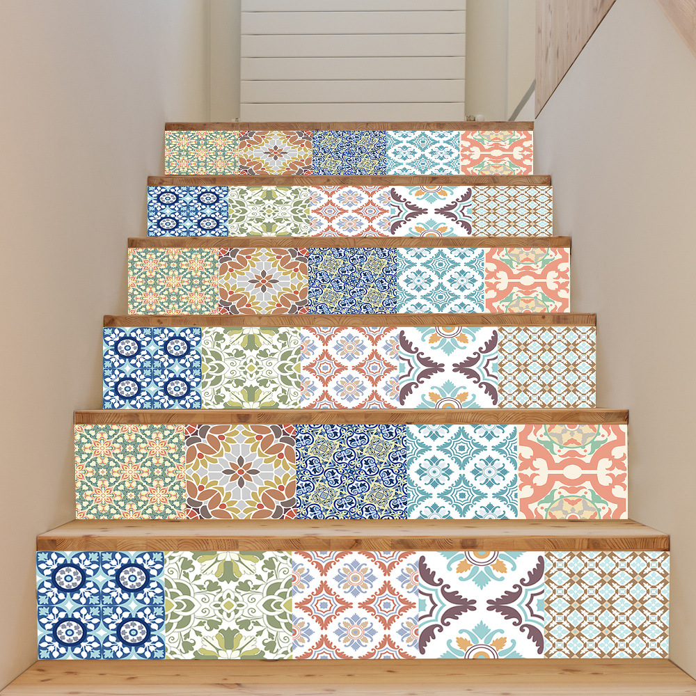 国境を越えたカラータイル階段に家の階段を貼って装飾防水壁に6枚/セットを貼った