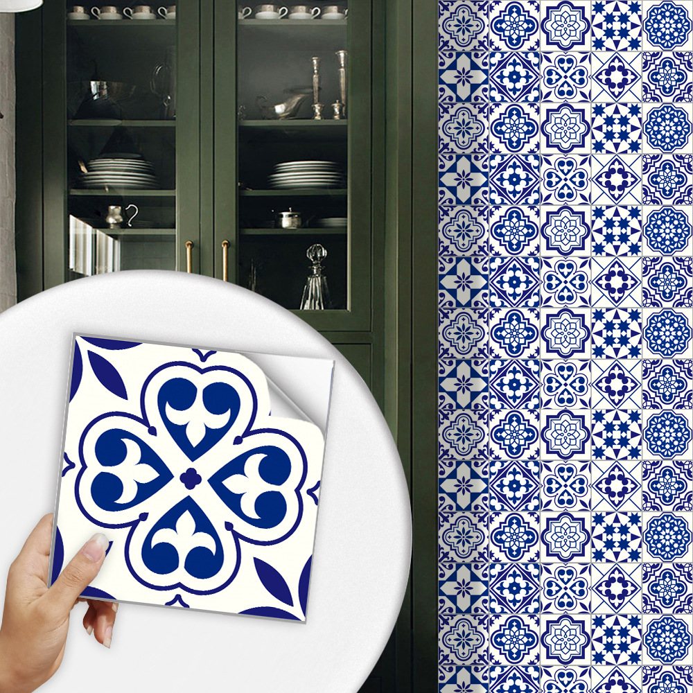 10枚入りの青い花れんがの表面の明るい膜のシミュレーションタイルはリビングルームの台所の浴室のリフォーム防水防油壁貼りを貼ります。