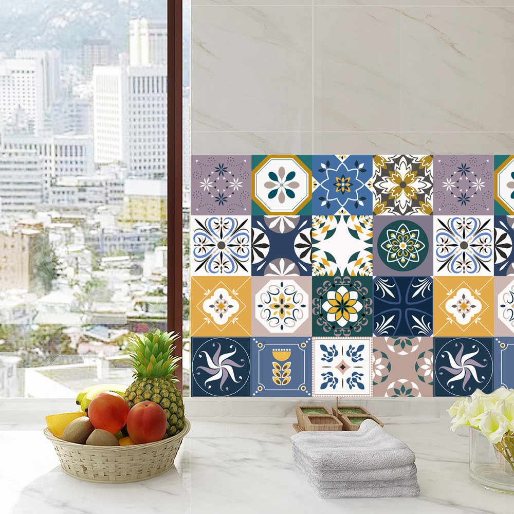 16枚のヨーロッパ風のタイルのタイルのタイルは浴室のバスタブの洗面台を貼って装飾の表面の明るい膜を改造して壁のステッカーを取り除くことができます。