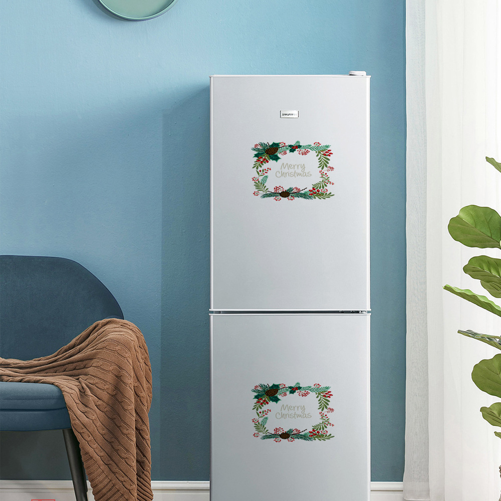 クリスマスの木の葉の花輪冷蔵庫は便器の食器棚のタンスを貼って壁を改造して祭りの装飾のステッカーを貼ります。