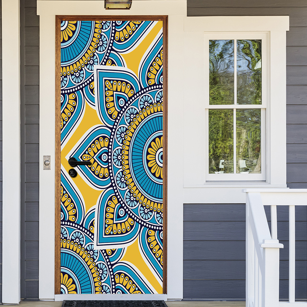 2枚/セット曼荼羅模様のドアにリビングルームの寝室の装飾壁に貼り付けると、壁紙を取り除くことができます