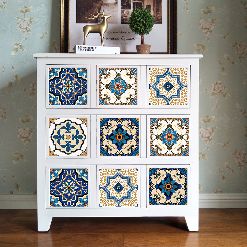 Amazonソース10枚入りブルーレトロ水晶ハードタイルタイル貼りキッチン浴室家庭装飾壁貼り