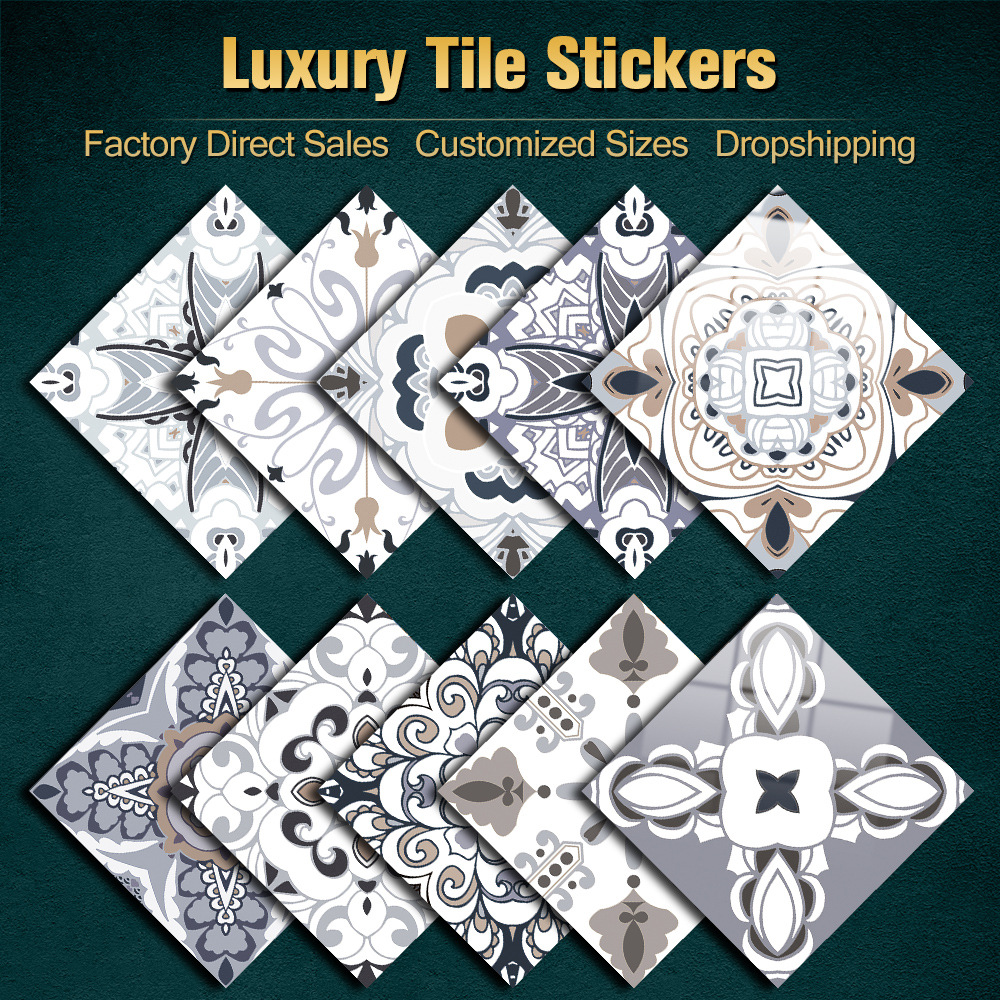 Wishソース10枚入り曼荼羅模様水晶ハードタイルタイル貼りキッチン浴室家庭装飾壁貼り