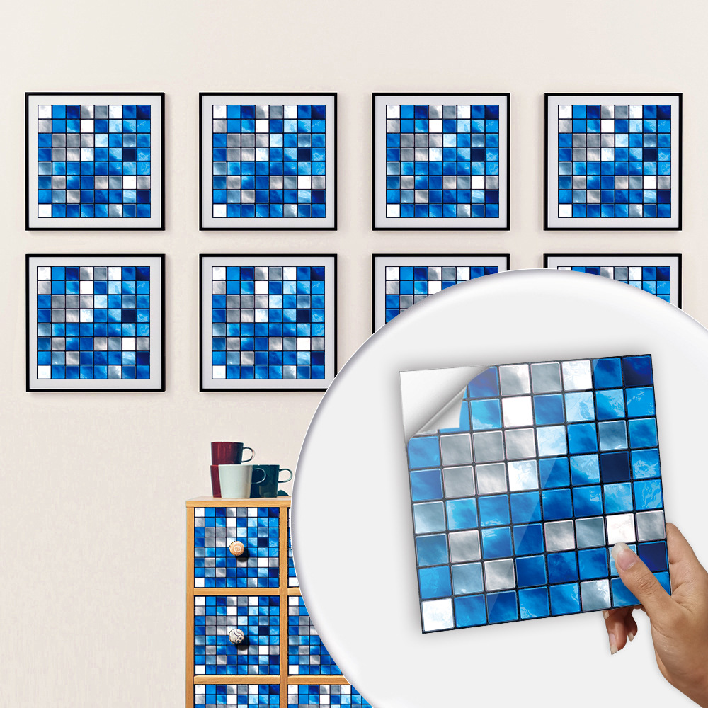 Amazonソース10枚入りブルーモザイク水晶ハードタイル貼りキッチン浴室家庭装飾壁貼り