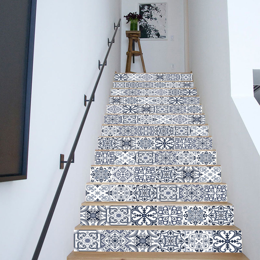 Wishソースグレーの素朴なタイル階段貼りは、壁から階段の家庭装飾を剥ぎ取る