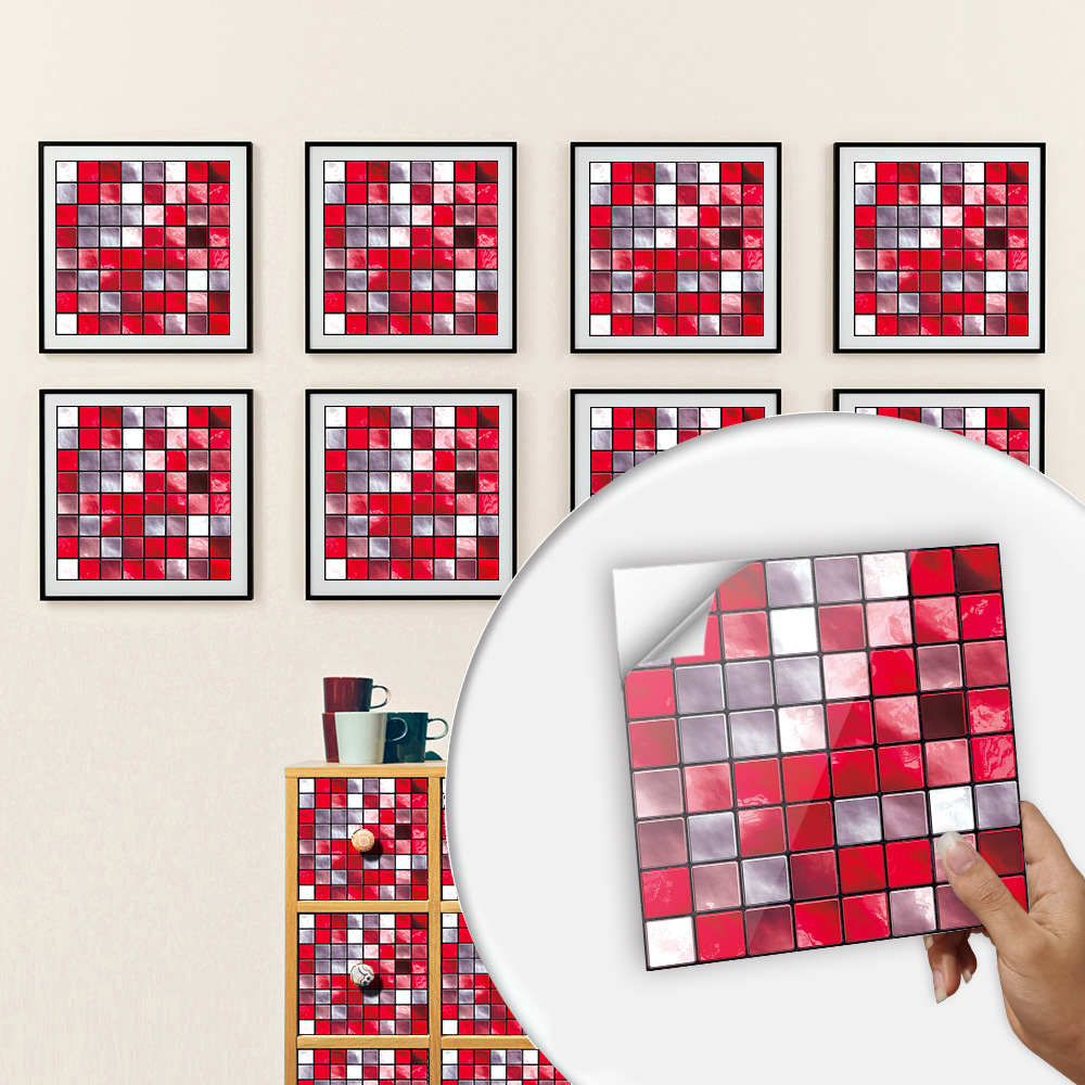 アマゾンのソース10枚入りの赤いモザイク水晶の硬いタイルは台所の浴室の家庭装飾の壁に貼ってあります。