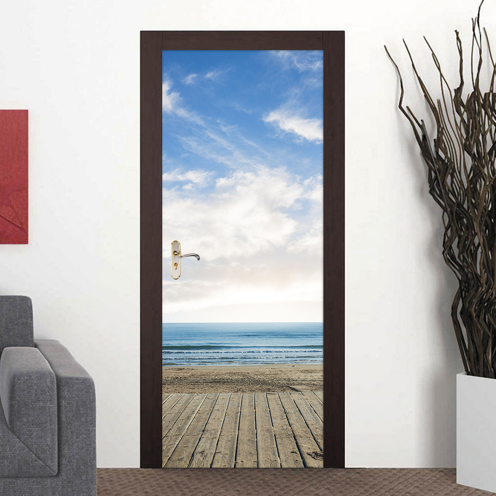 Aliexpressの商品の供給源の碧海の青空のビーチのドアは粘着して壁を取り除いて客間の寝室を貼って装飾を作り直すことができます。