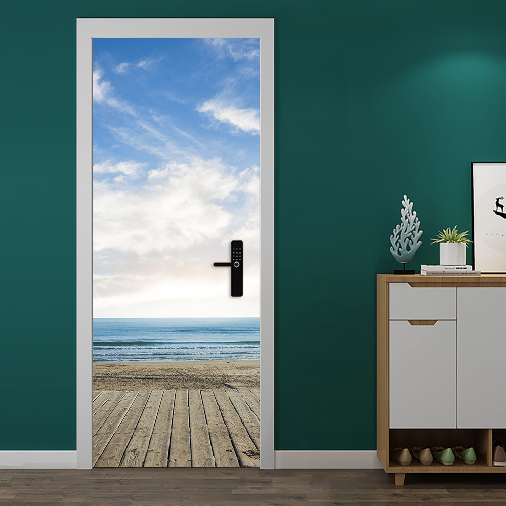 速売通は青空の海の砂浜のドアに貼り付けるだけで、壁を取り除くことができます。
