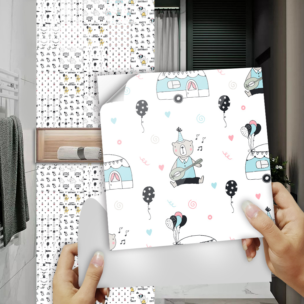 越境ins商品の供給源10枚はかわいいアニメの模様のタイルを入れて台所の浴室の家の装飾を貼って壁を作り直します。