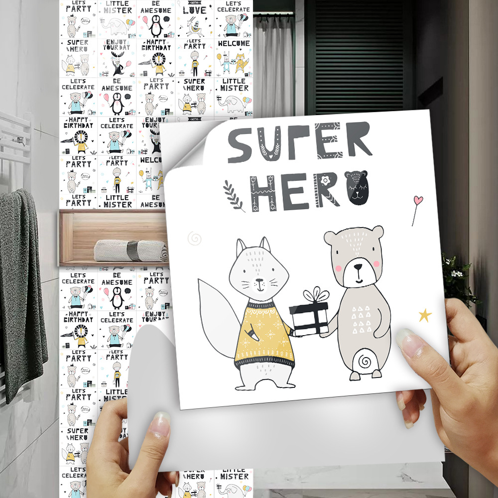 クロスボーダーwishソース10枚入りのかわいいアニメ模様のタイルは台所の浴室の家の装飾を貼って壁を改装します。