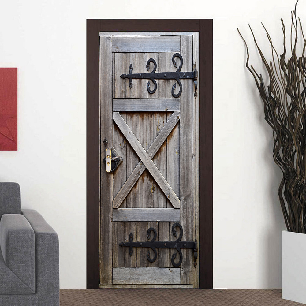 国境を越えてレトロな古い模擬木戸スタイルのドア貼りは、壁貼りリビングルームの寝室装飾を取り除くことができる