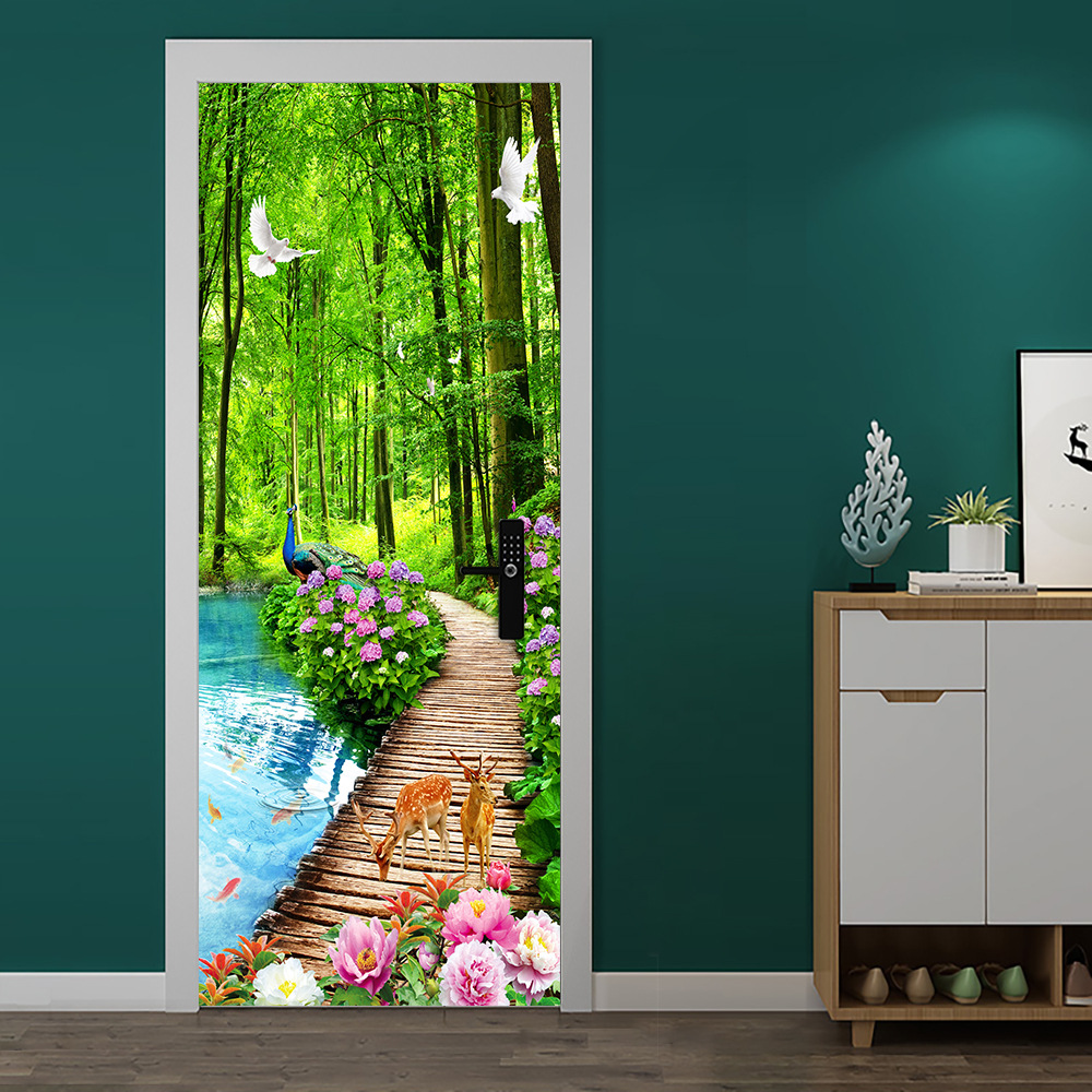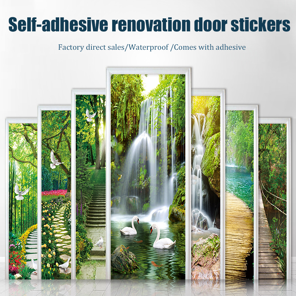 Aliexpress商品の供給源湖心島の美しい景色のドアは粘着して壁を取り除いて客間の寝室を貼って装飾を作り直すことができます。
