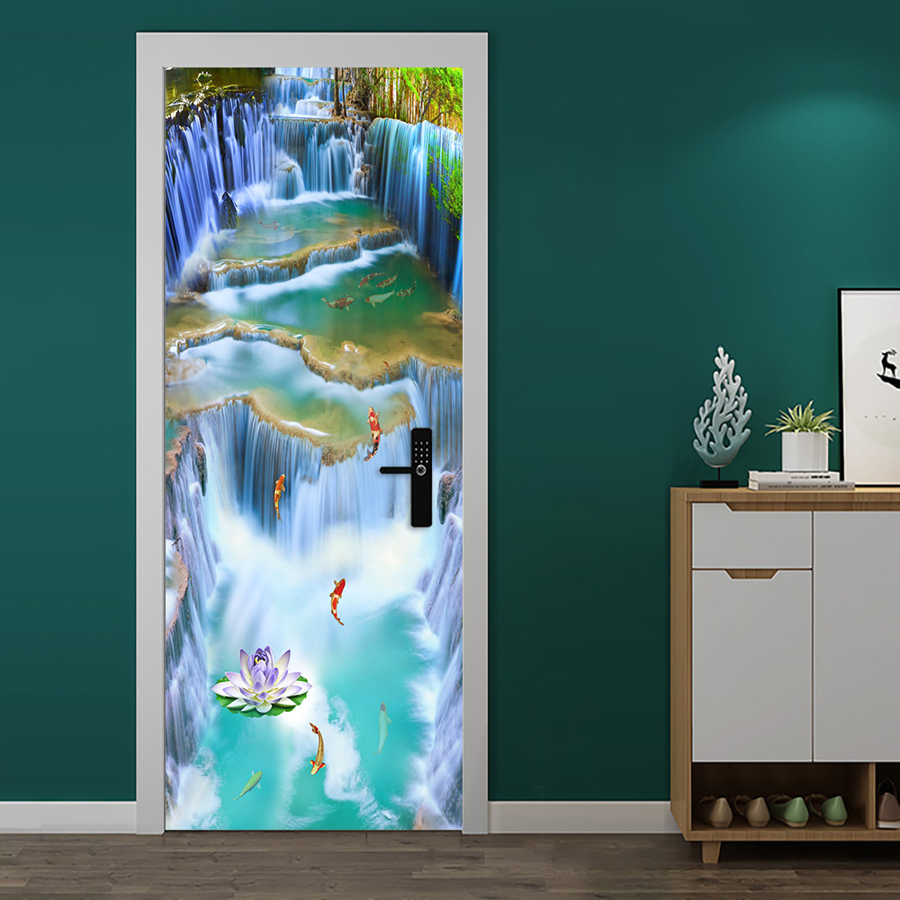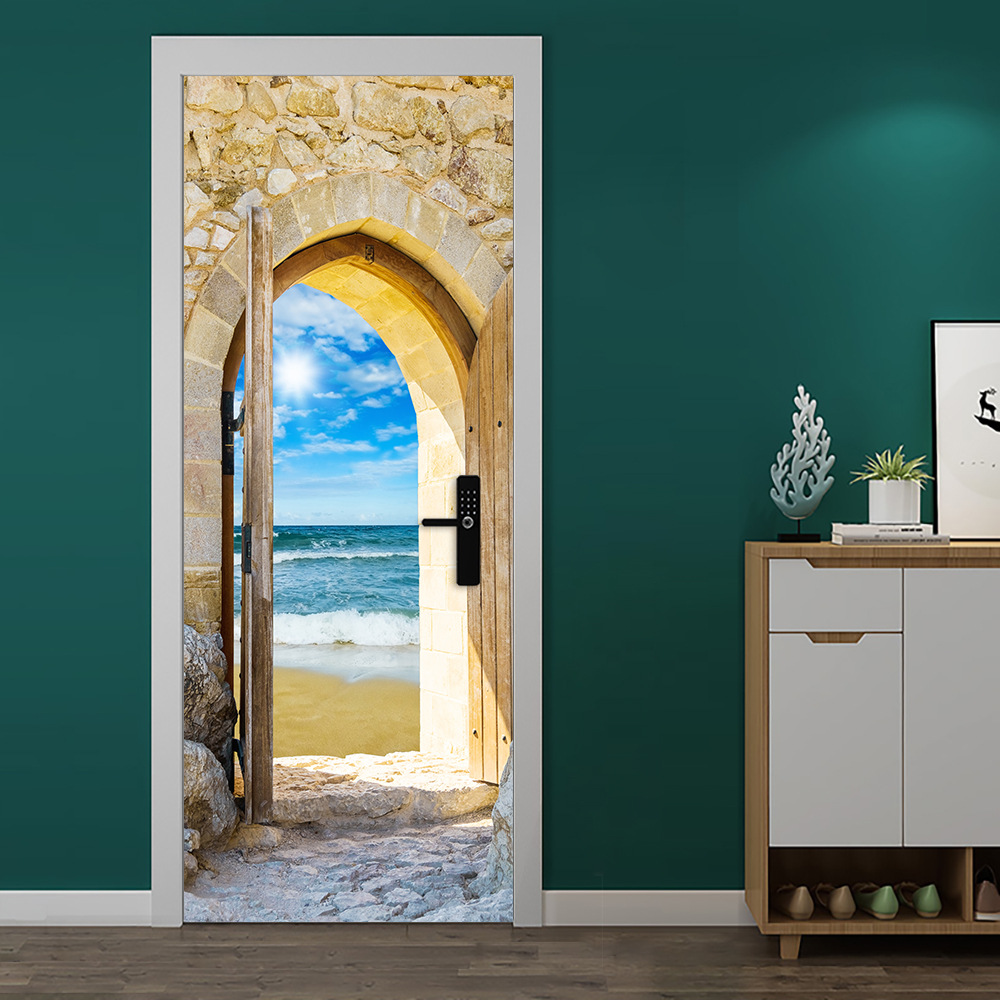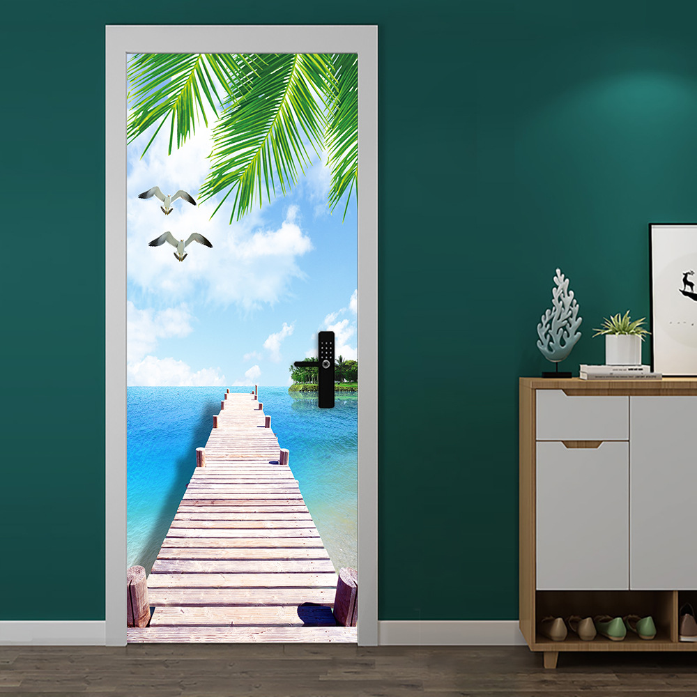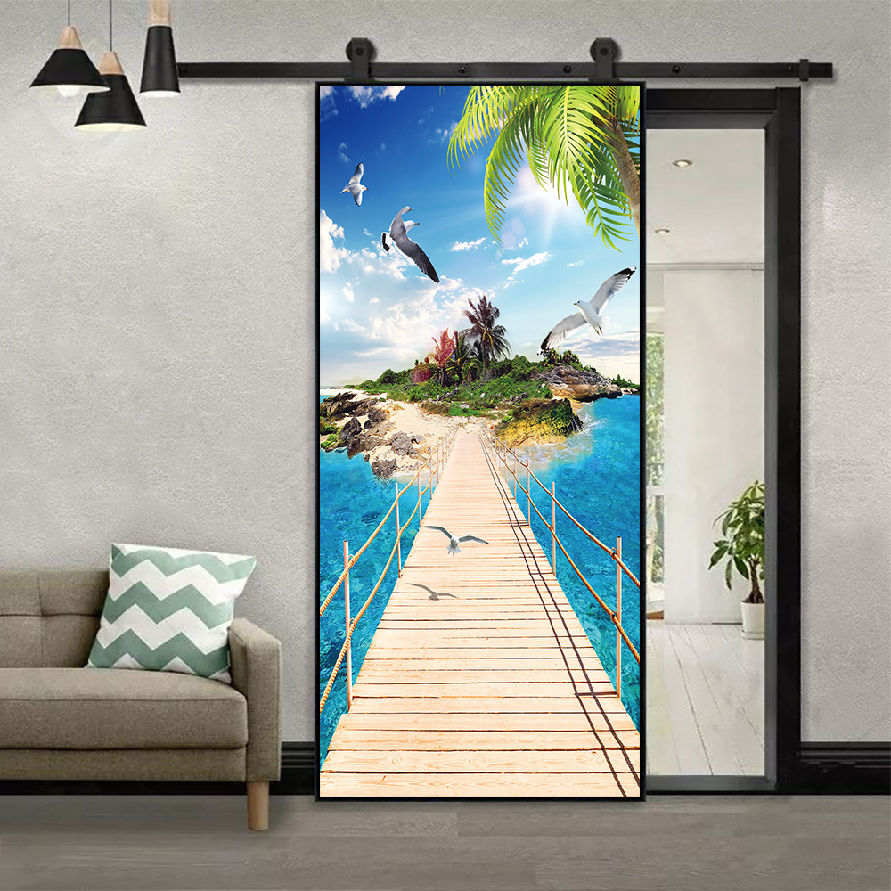 Lazadaの商品の供給源の島の美しい景色の扉は自らくっつくことができて壁を取り除いて客間の寝室を貼って装飾の壁紙を作り直すことができます。