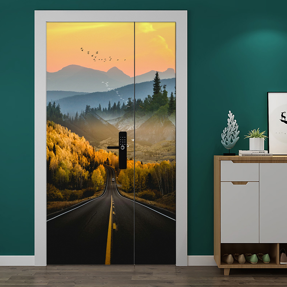 Wishは夕日の道路の美しいドアの貼り付けを専用にして、壁を取り除いてリビングルームの寝室を飾る壁紙を飾ることができる