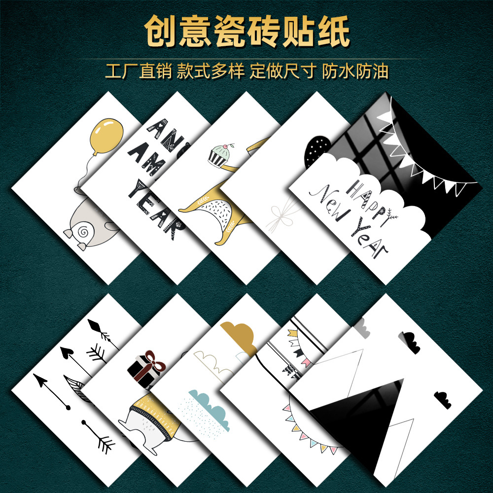 速売通ソース北欧スタイルアニメ動物水晶ハードタイルタイル貼り戸棚台所家庭装飾壁貼り