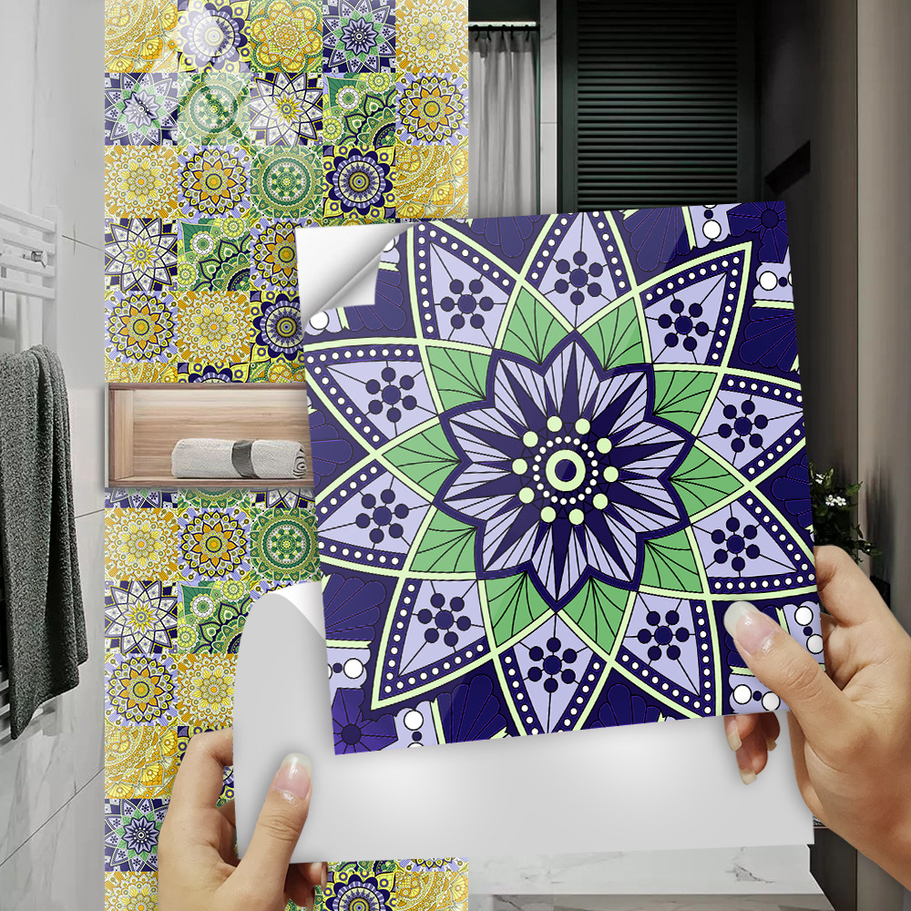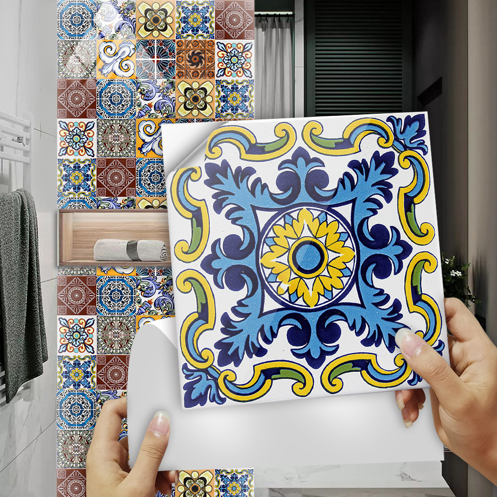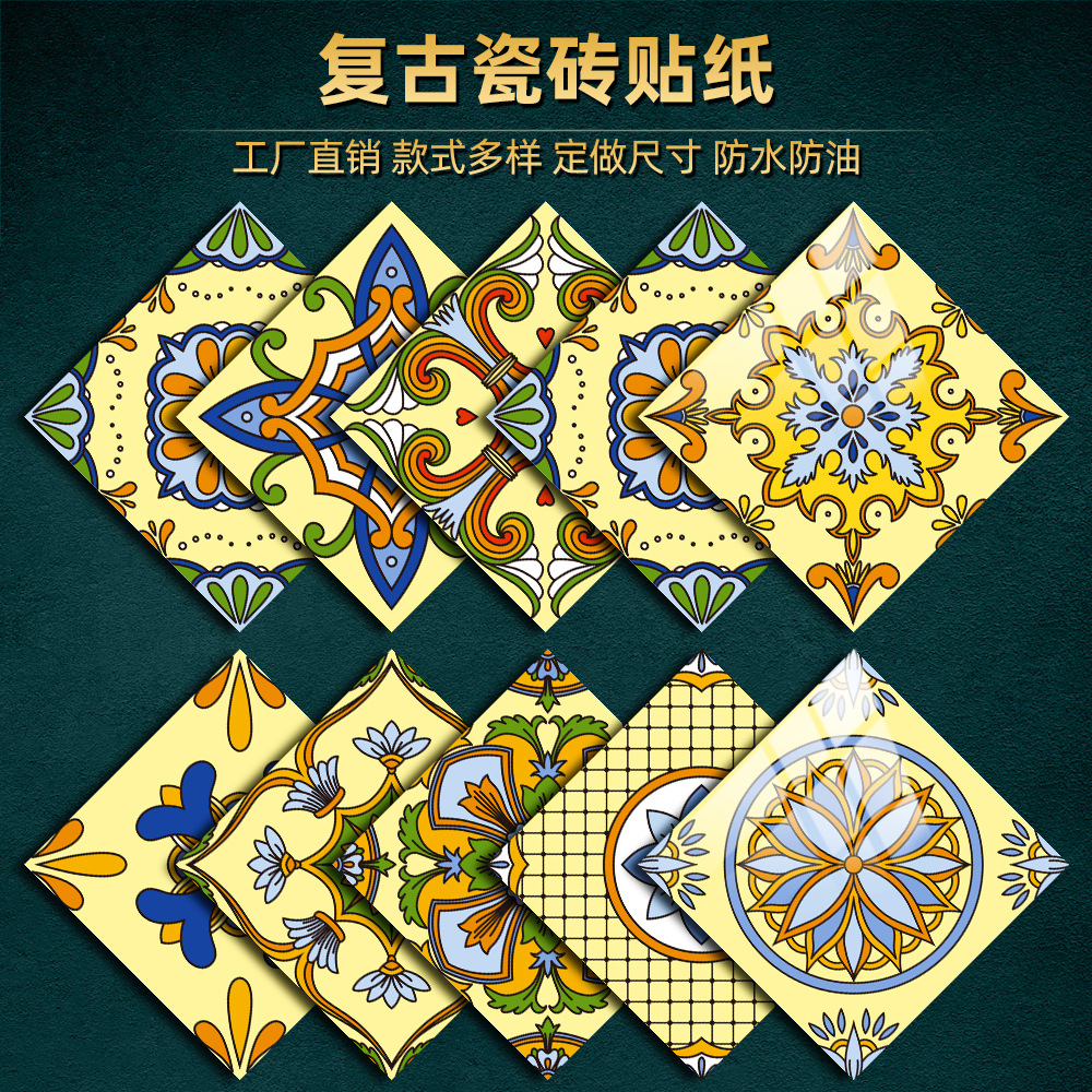 Aliexpressソースボヘミアンスタイルクリスタルハードタイルタイルステッカーキッチンホーム装飾防油ウォールステッカー