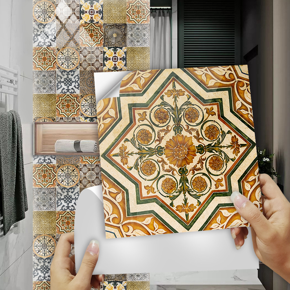 アマゾンはマンダラのスタイルを10枚入れて、タイルを厚くして戸棚の床の家の装飾の壁に貼っています。
