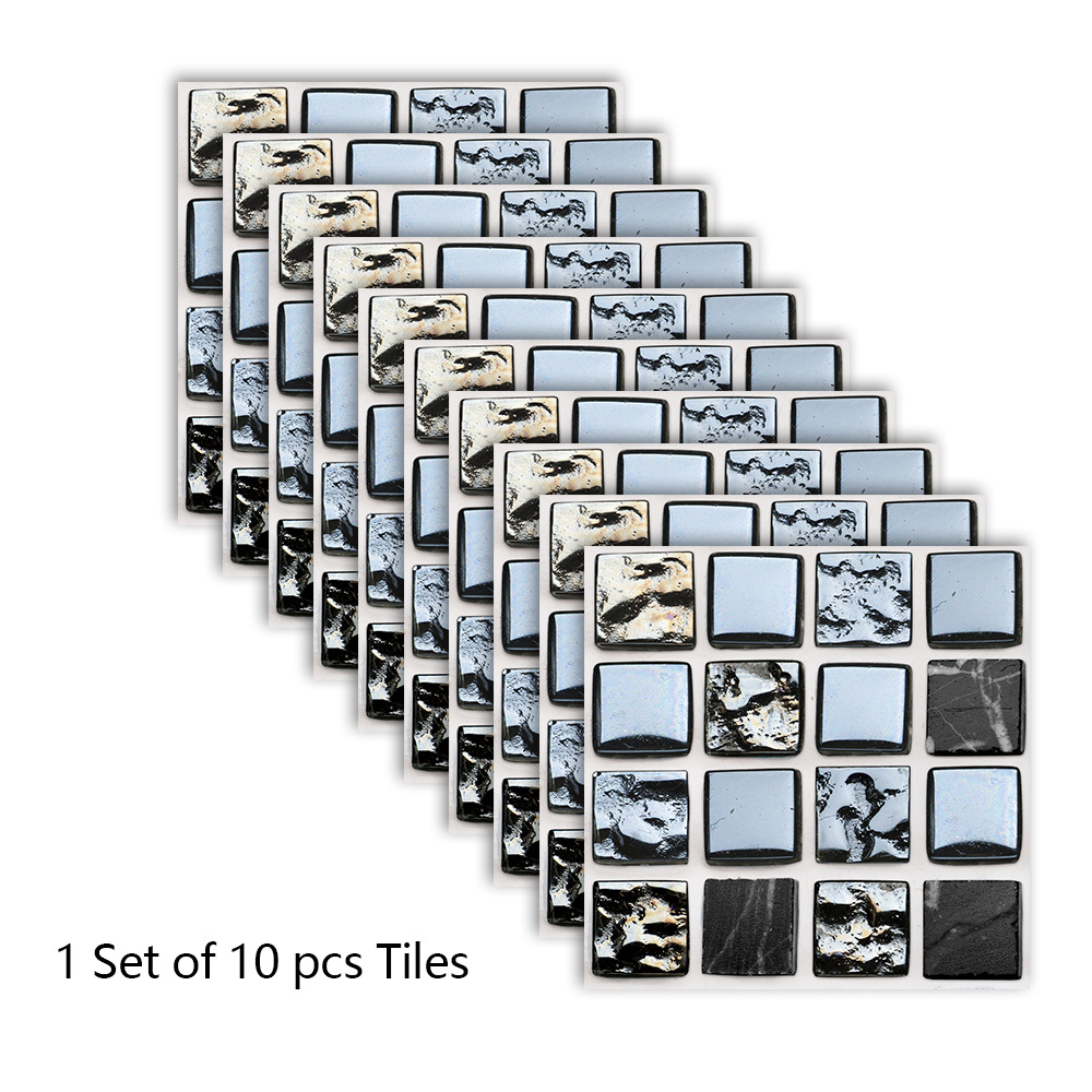Amazonの商品ソース10枚入りグレー柄クリスタルハードタイル貼り付けキッチンインテリアウォールステッカー
