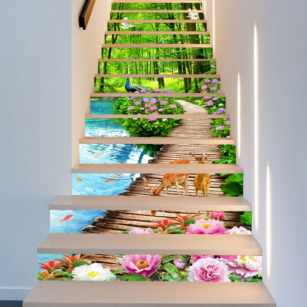 国境を越えたamazonのソースは13枚の森林木橋階段を貼って壁に貼って階段の家庭装飾を貼った