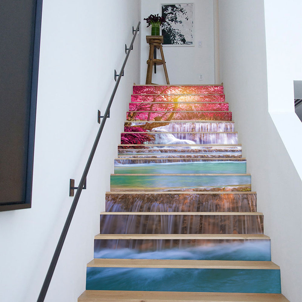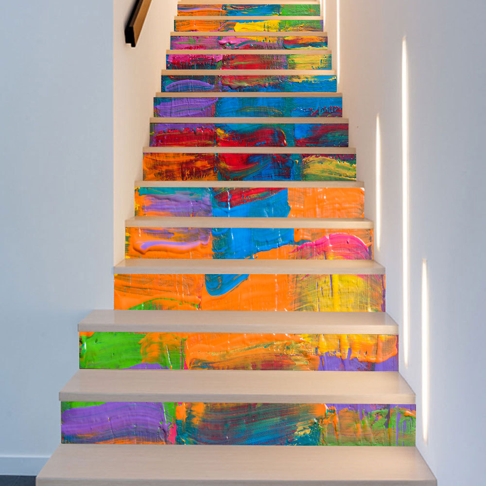 国境を越えたinsソースシミュレーション七彩水墨画階段は壁に貼り付けて階段の家庭装飾を貼る