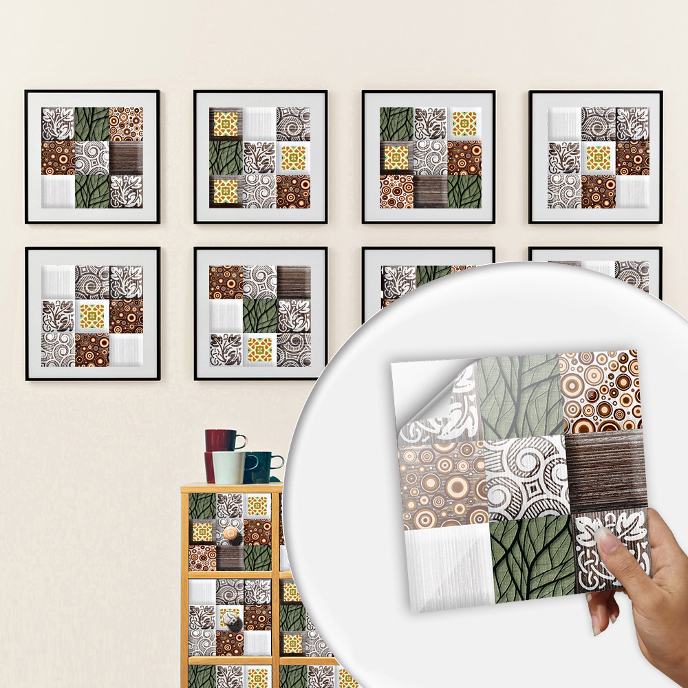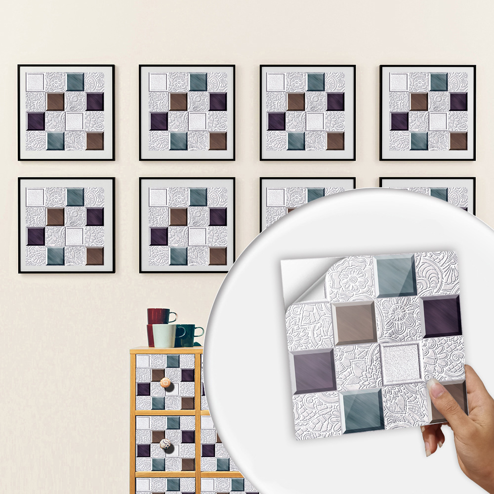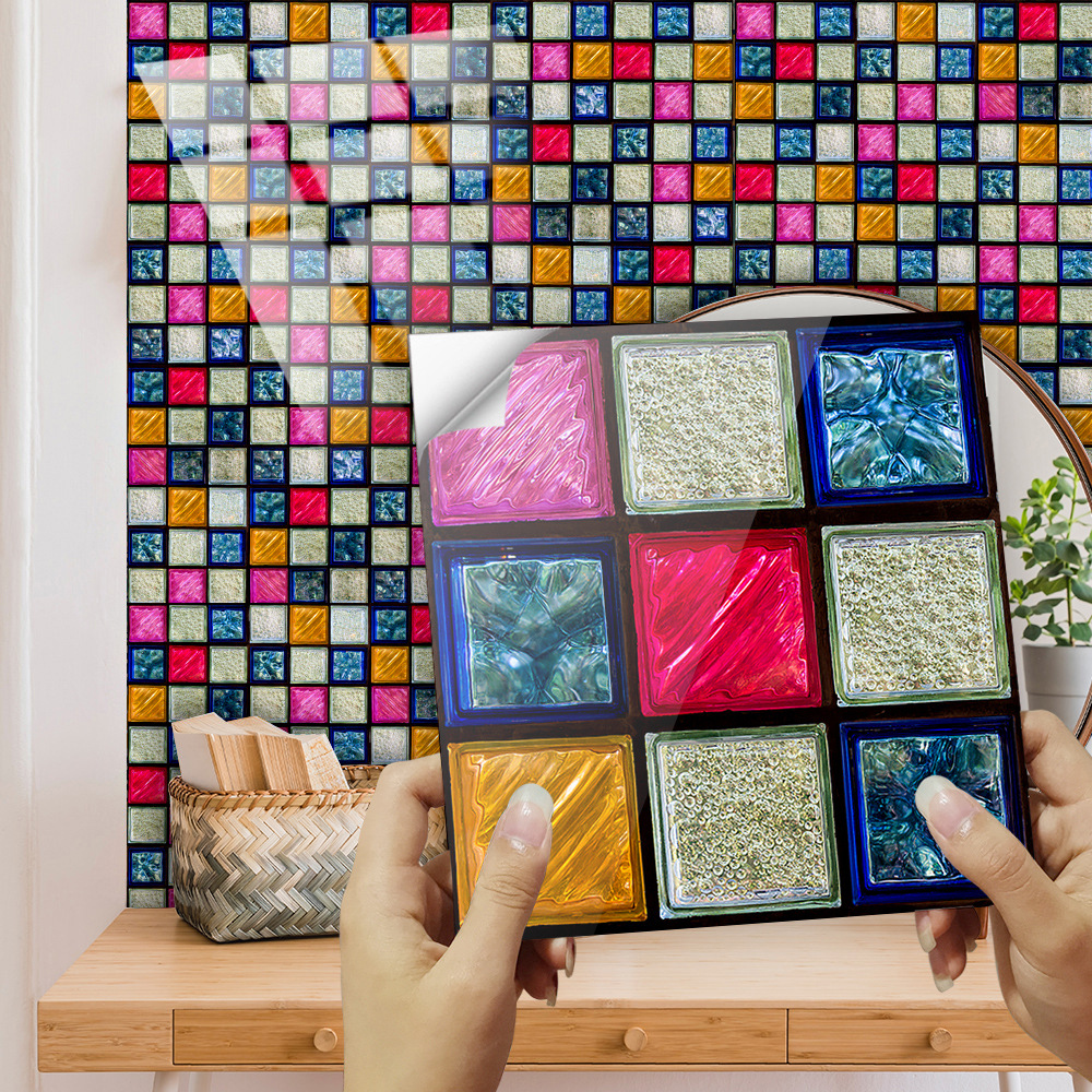 Lazadaソース10枚入平面モザイクタイル貼りキッチン浴室家庭装飾自己接着防油壁貼り