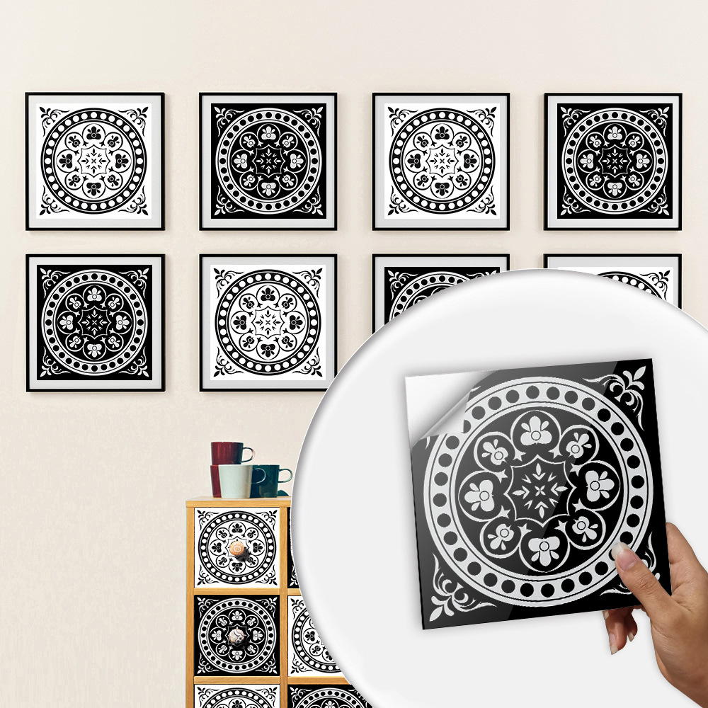 国境を越えた速売通のソースは白黒の曼荼羅の風格の水晶の硬い板の磁器のれんがを貼って家の装飾の防油の壁を貼って貼ります。