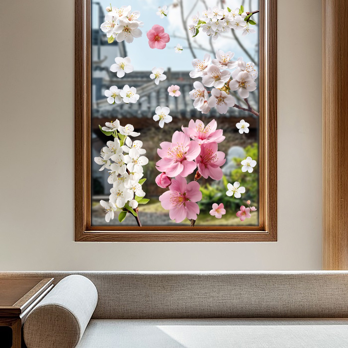 白とピンクの桜両面印刷接着剤不使用の壁ステッカー静電ガラスフィルム店の窓家の装飾