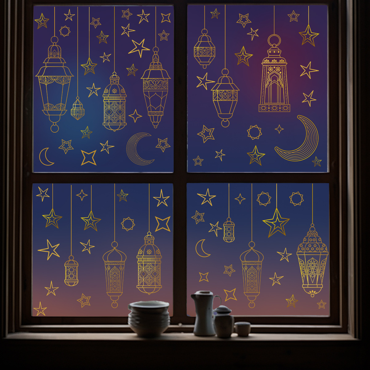 ムーンスターハンギングライト両面印刷接着剤不要の壁ステッカー静電ガラスフィルム店の窓の装飾用