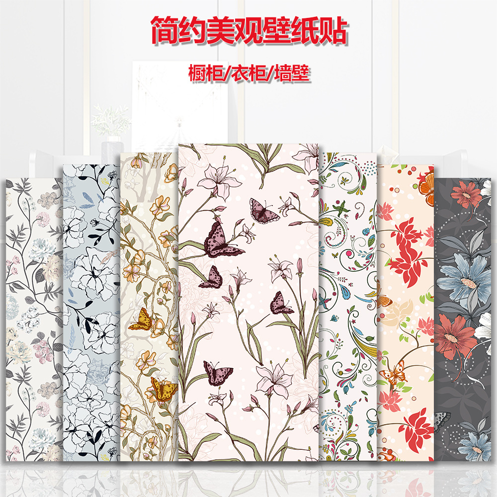 レトロなフロスト花卉植物模様戸棚背景壁装飾防水自己接着除去壁シール