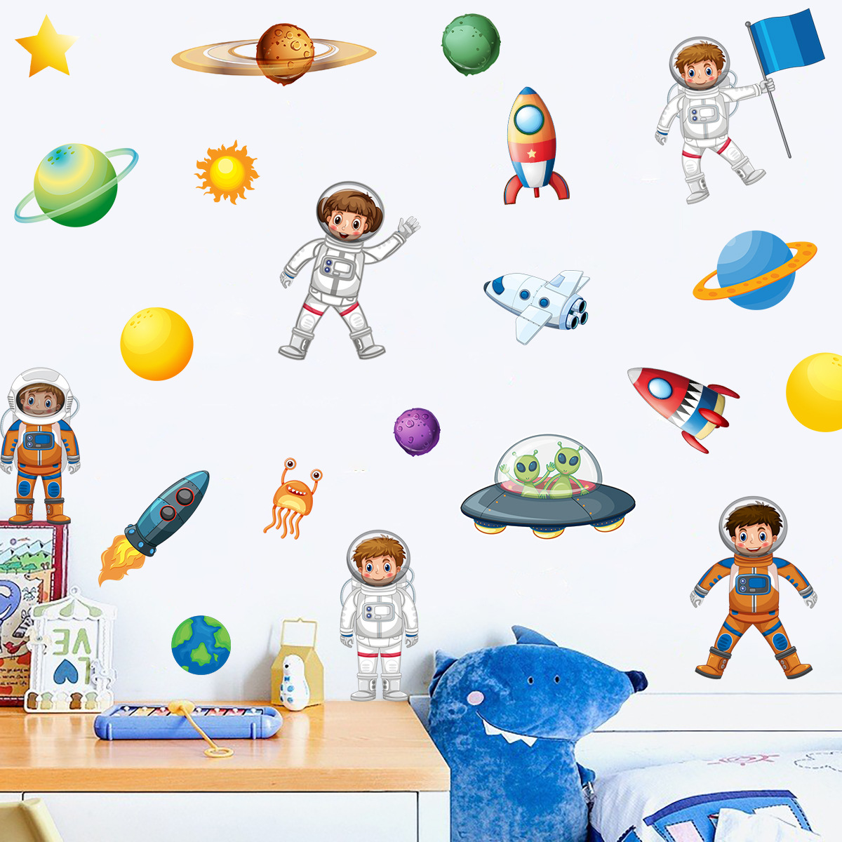 宇宙飛行士模様カラーアニメ小動物装飾壁貼りリビングキャビネット幼稚園落書き宇宙壁貼り