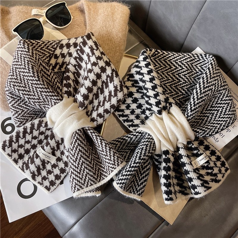 怠け者のクロスヘッドのマフラーの短いタイプの女性の秋冬の千鳥の格のニットのマフラーのファッションの韓国版の百合の保温のマフラー