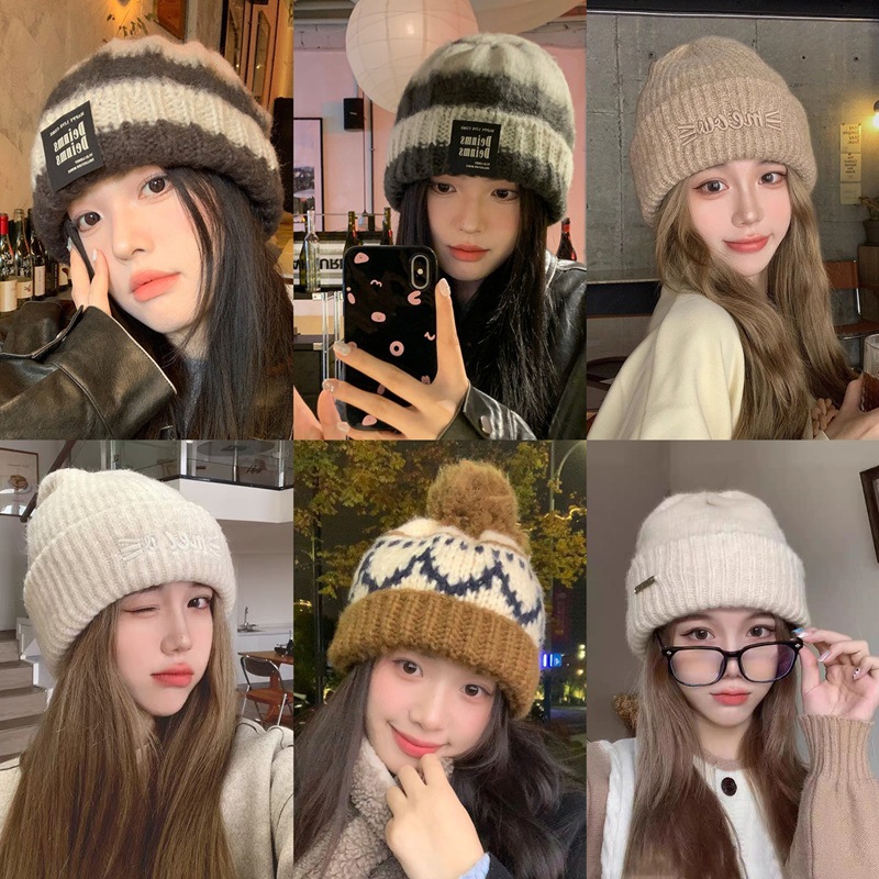 韓国版ドーパミンコントラストカラーニット帽女性用秋冬毛玉耳保護ウール帽子暖かく顔を大きくする小さな雷峰帽子トレンディ
