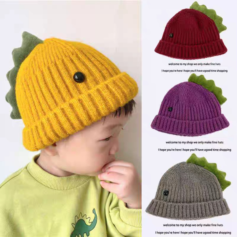 かわいい小さな恐竜子供用ウール帽子秋と冬暖かい男の子と女の子の赤ちゃん防風ニットプルオーバーベビー帽子