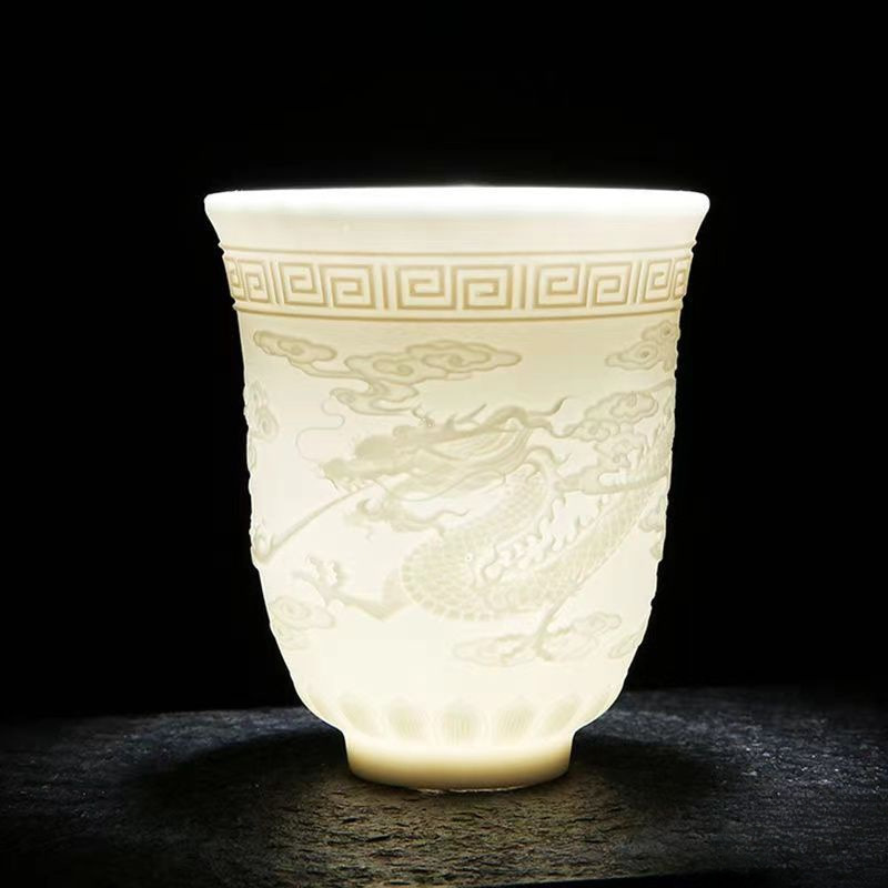 浮羊脂玉磁器呈祥主人杯陶磁器品茗茶碗工夫茶器杯