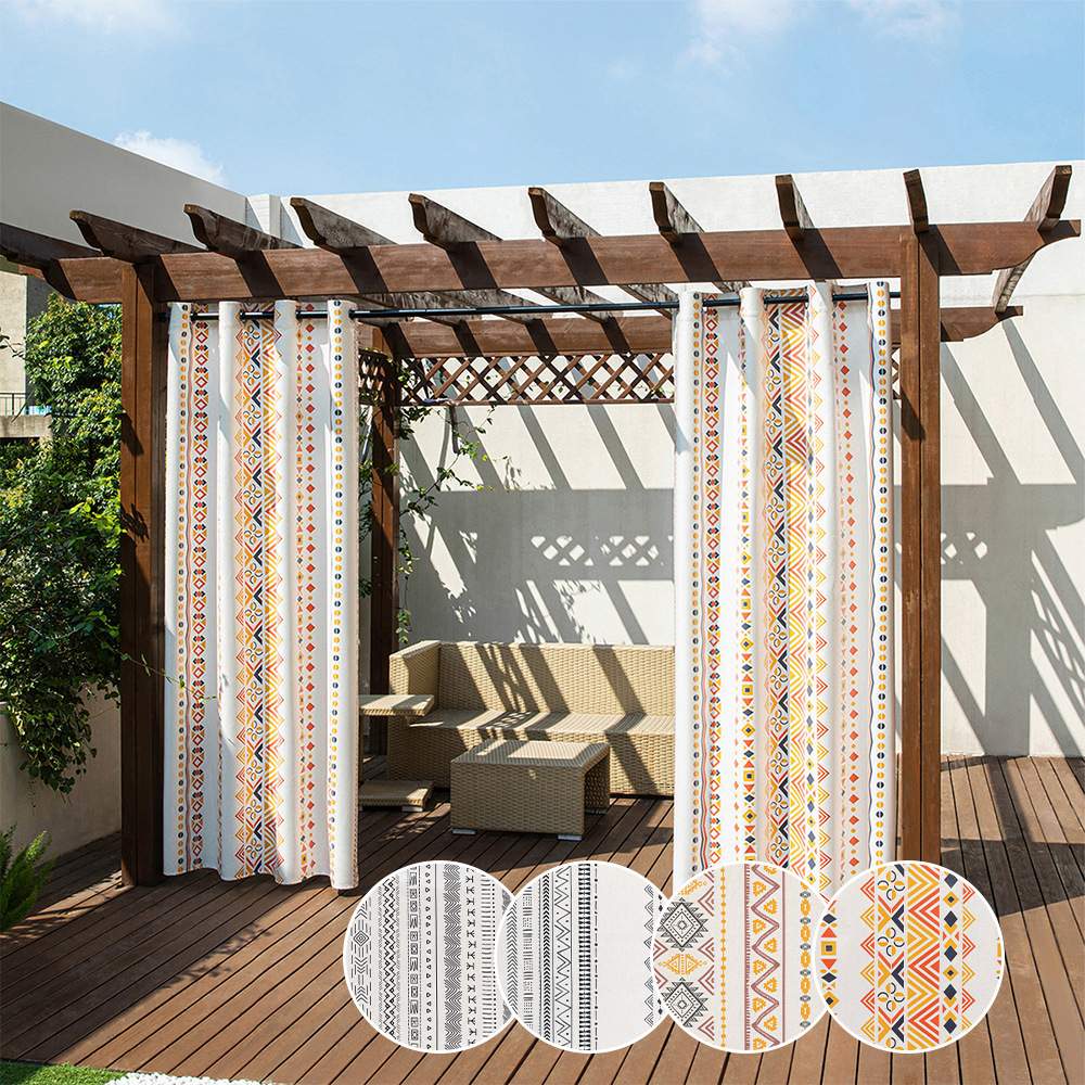 国境を越えたボヘミアン屋外カーテン綿麻キッチンバルコニー半遮光布カーテン綿麻質感防水カーテン