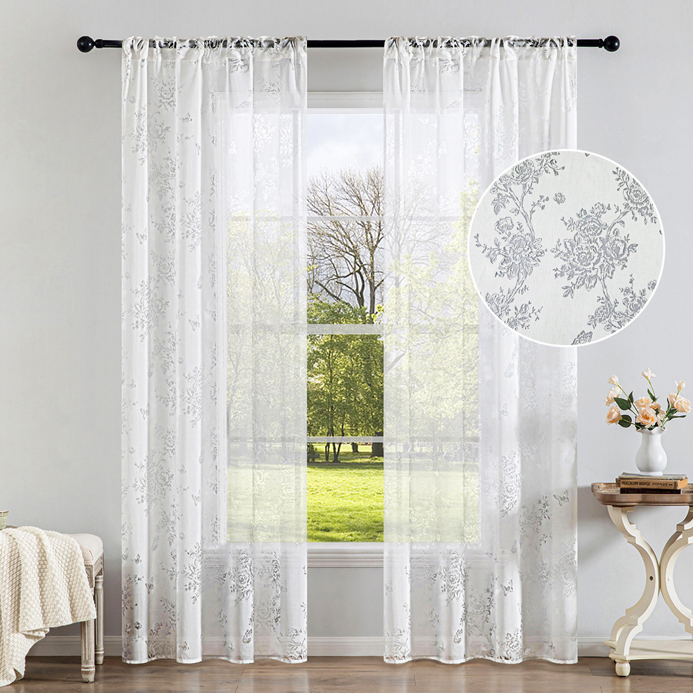 フランス花田ジャカード窓の客間には白い光が透けています。