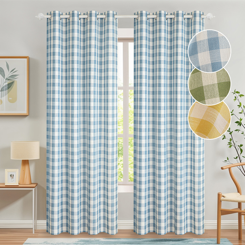 新しい古典的な大きな格子カーテン家庭用リビングルームの書斎の半遮光布断熱シンプルでフレッシュな格子カーテン