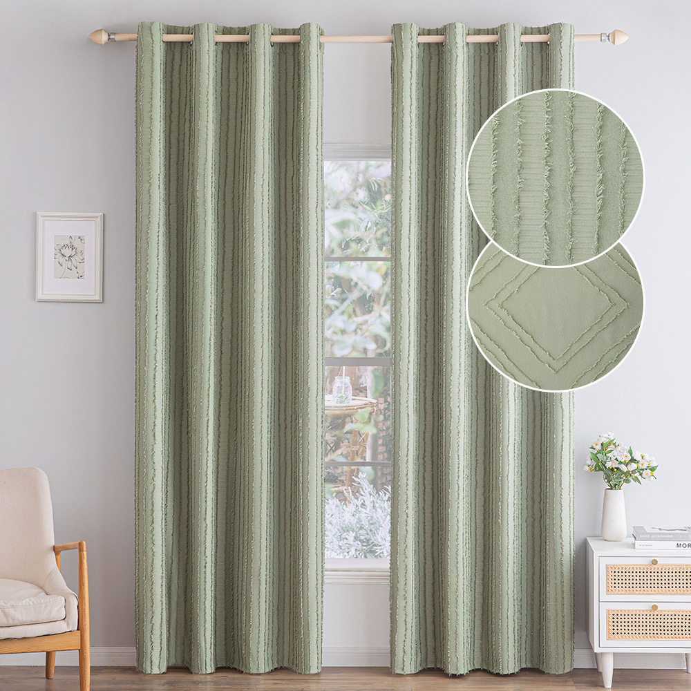 純色の幾何学的な切り花カーテン日焼け止め断熱カーテン床に落ちた窓網戸カーテンリビングルーム寝室書斎遮光カーテン