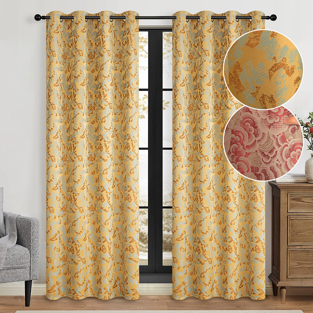 新製品 新中式ジャカードカーテン 家庭用遮光断熱カーテン 中世風高級感遮光カーテン 完成品