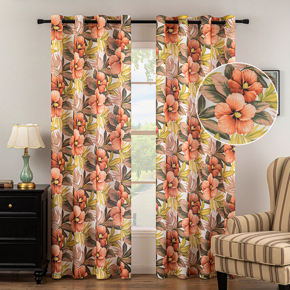 クロスボーダー麻布百合プリントカーテン家庭用リビングレストラン寝室断熱カーテンアメリカ綿麻質感カーテン