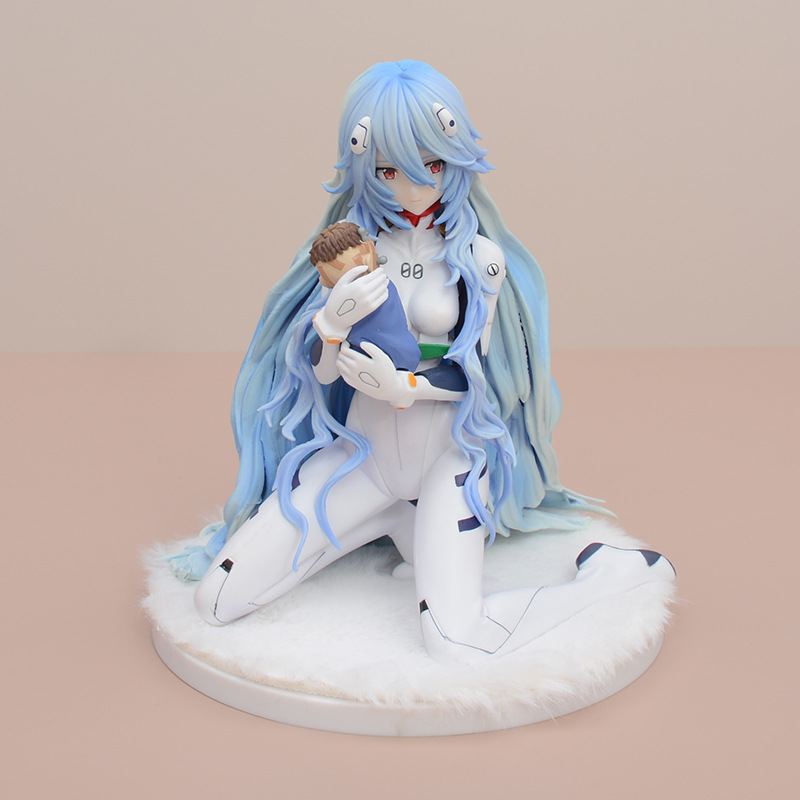 EVA 長髪青色綾波レイ 跪き姿勢でクマを抱く 毛布台座付きアニメフィギュア模型飾り
