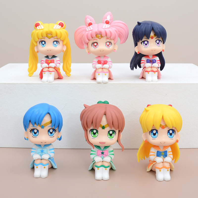 6種類の美少女戦士フィギュアq版月野兎水氷月座り姿モデル人形ガチャ人形置物卸売り