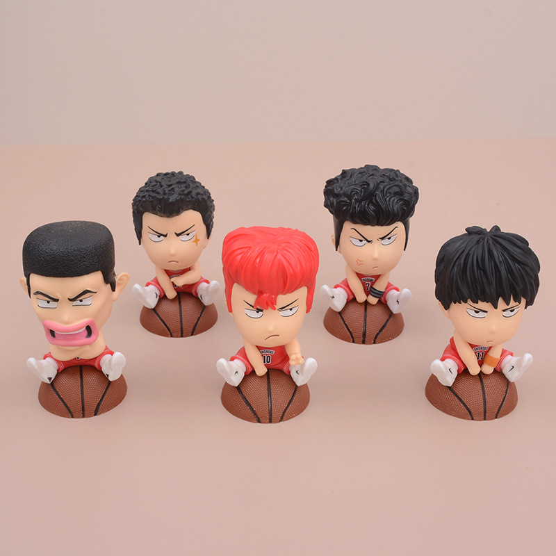 5種類のq版のスラムダンクの大きい頭のアニメの潮は桜木の花道の流川の楓の座る姿を遊んで模型の手を飾って人形を作ります。