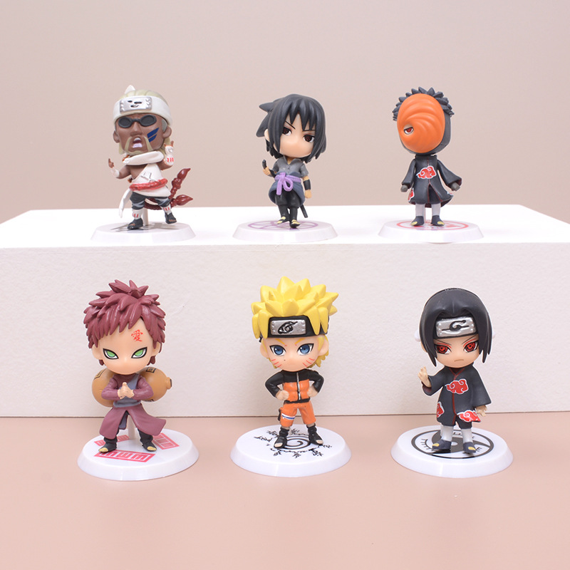 6種類の火影忍者1世代f賞の疾風伝の模型の手作りの箱の卵のアニメの公仔の車の台座の置物