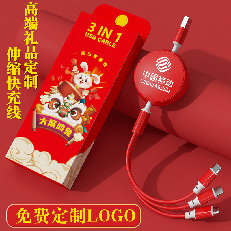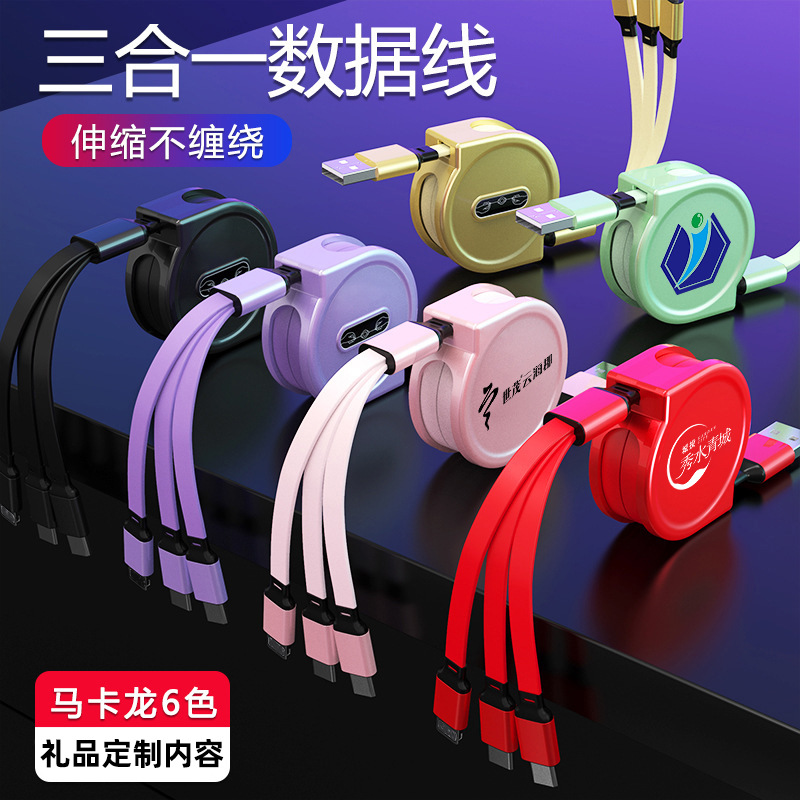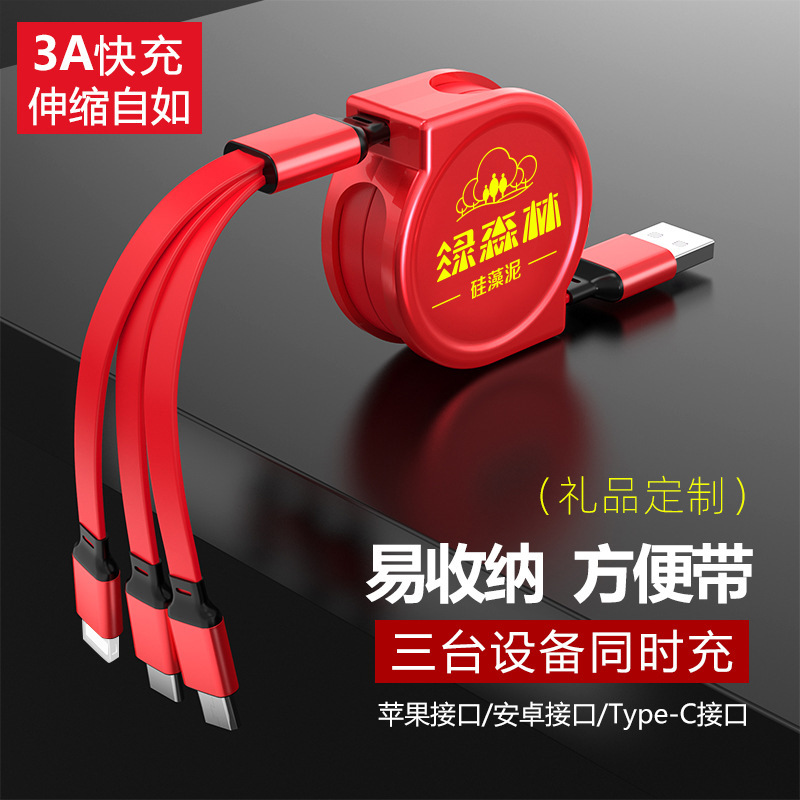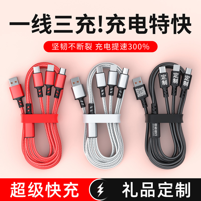 超速充データ線三合一広告印刷ロゴ開業イベントプレゼント携帯電話充電線一引き三