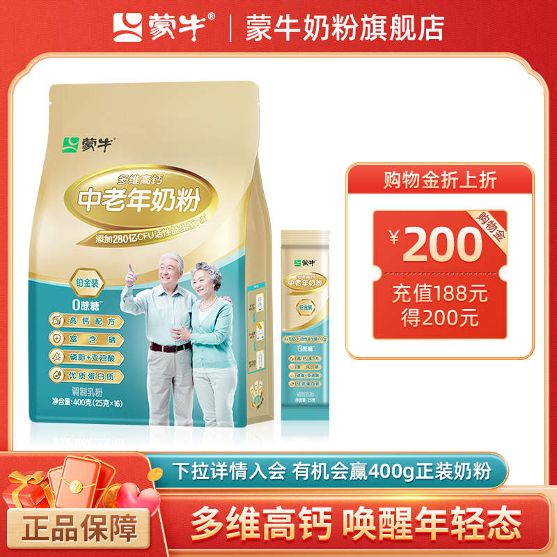 蒙牛プラチナは多次元高カルシウムを入れています。中高年400gは目上の人に栄養を与えます。朝食は牛を飲みます。